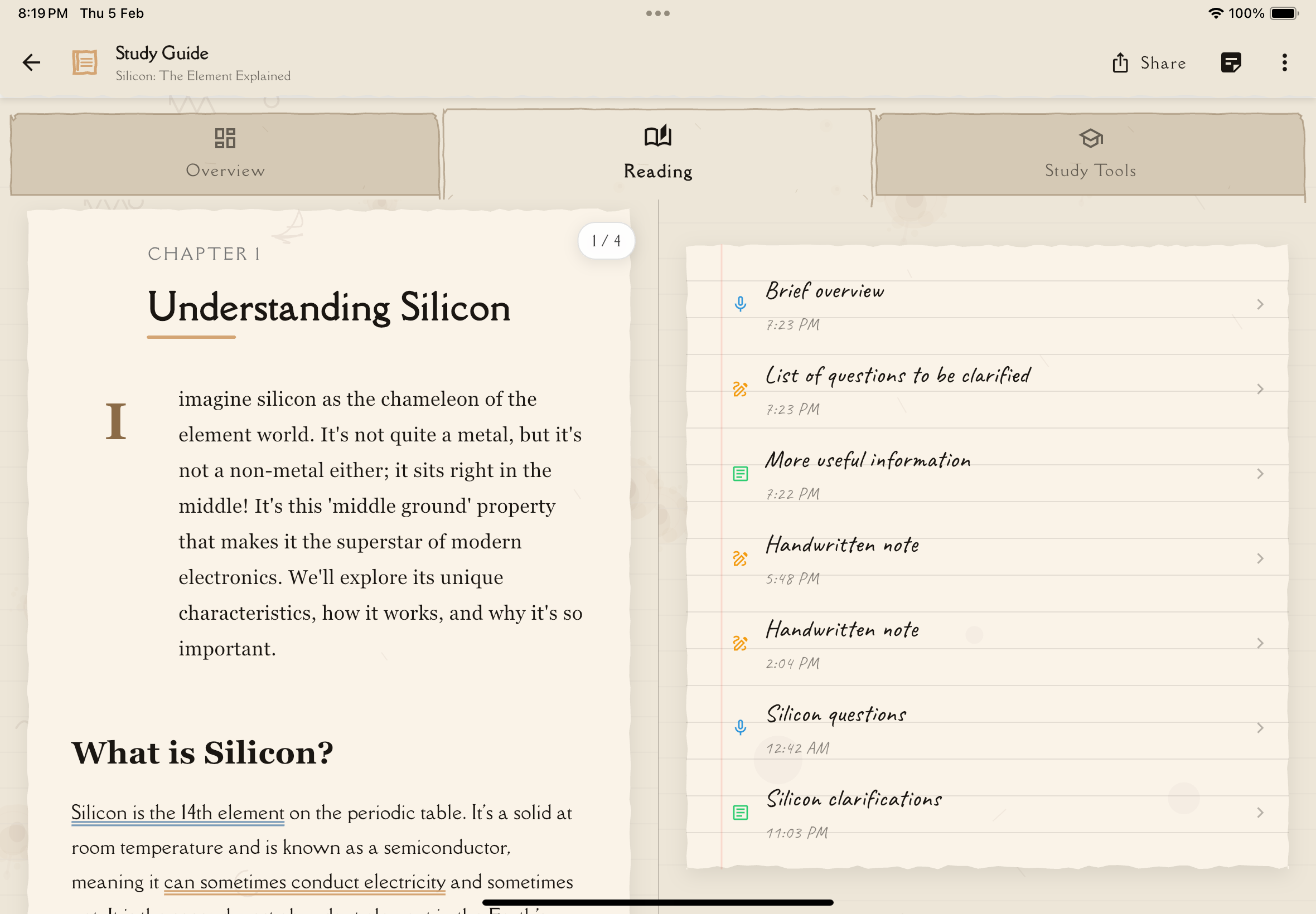 View, organize, and navigate all your annotations, insights, and explanations directly in the Reading tab