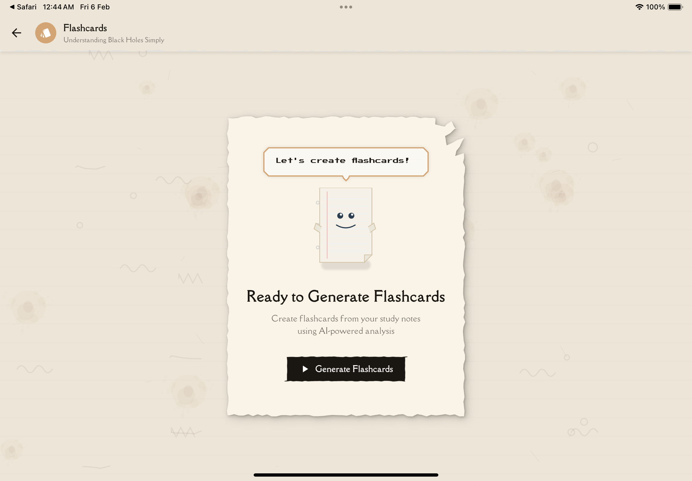 Ready to create flashcards? Learn how to Generate Flashcards automatically or Create & Edit Flashcards manually. Then dive into Studying Flashcards to master your material.
