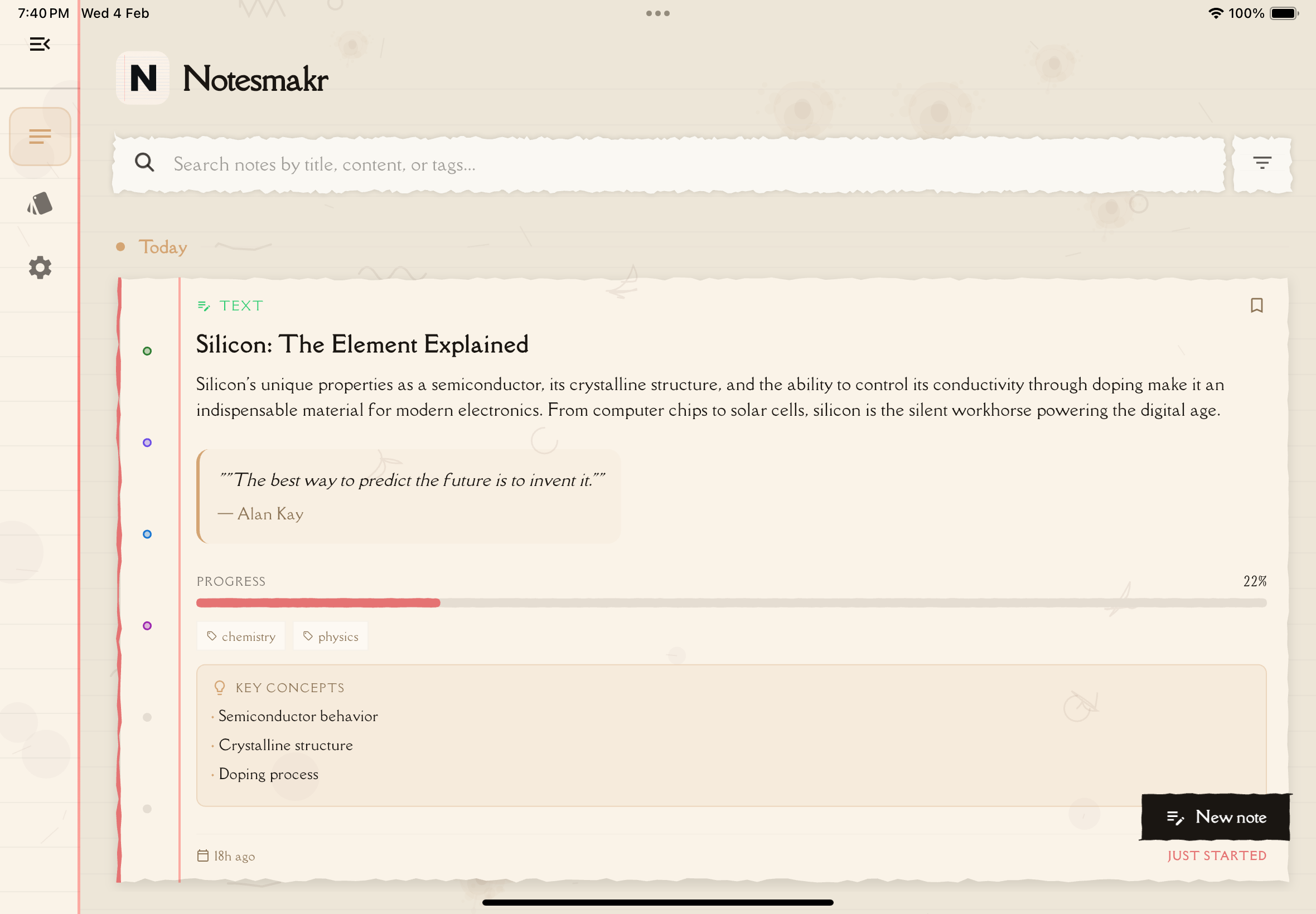 Getting started tip: Create your first note with something simple—a short article or audio recording. This helps you get comfortable with the process before tackling longer, more complex materials.