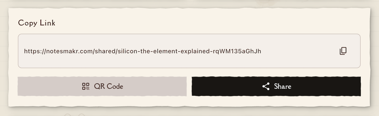 When you open the share page, Notesmakr automatically creates a share link if one doesn't exist. You'll see the share URL displayed immediately.