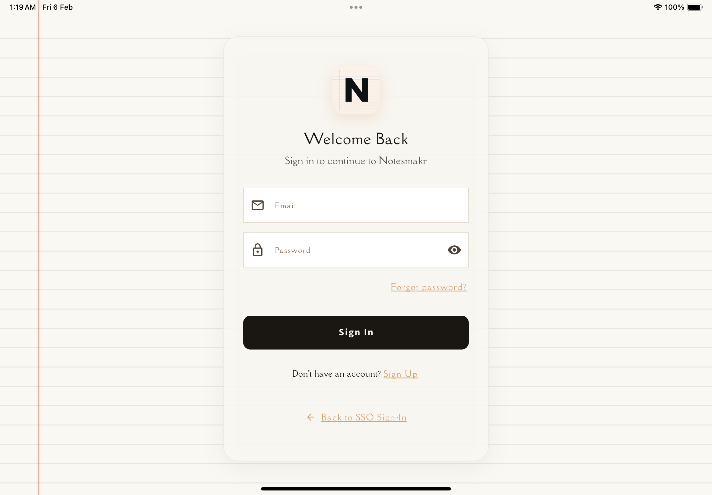 Prefer to use a traditional email and password? Notesmakr offers email authentication as an alternative to SSO sign-in methods.
