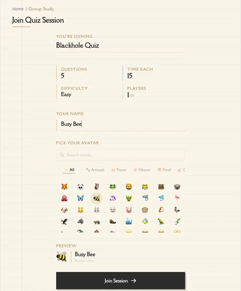 Join and play group study sessions from a web browser without installing the app