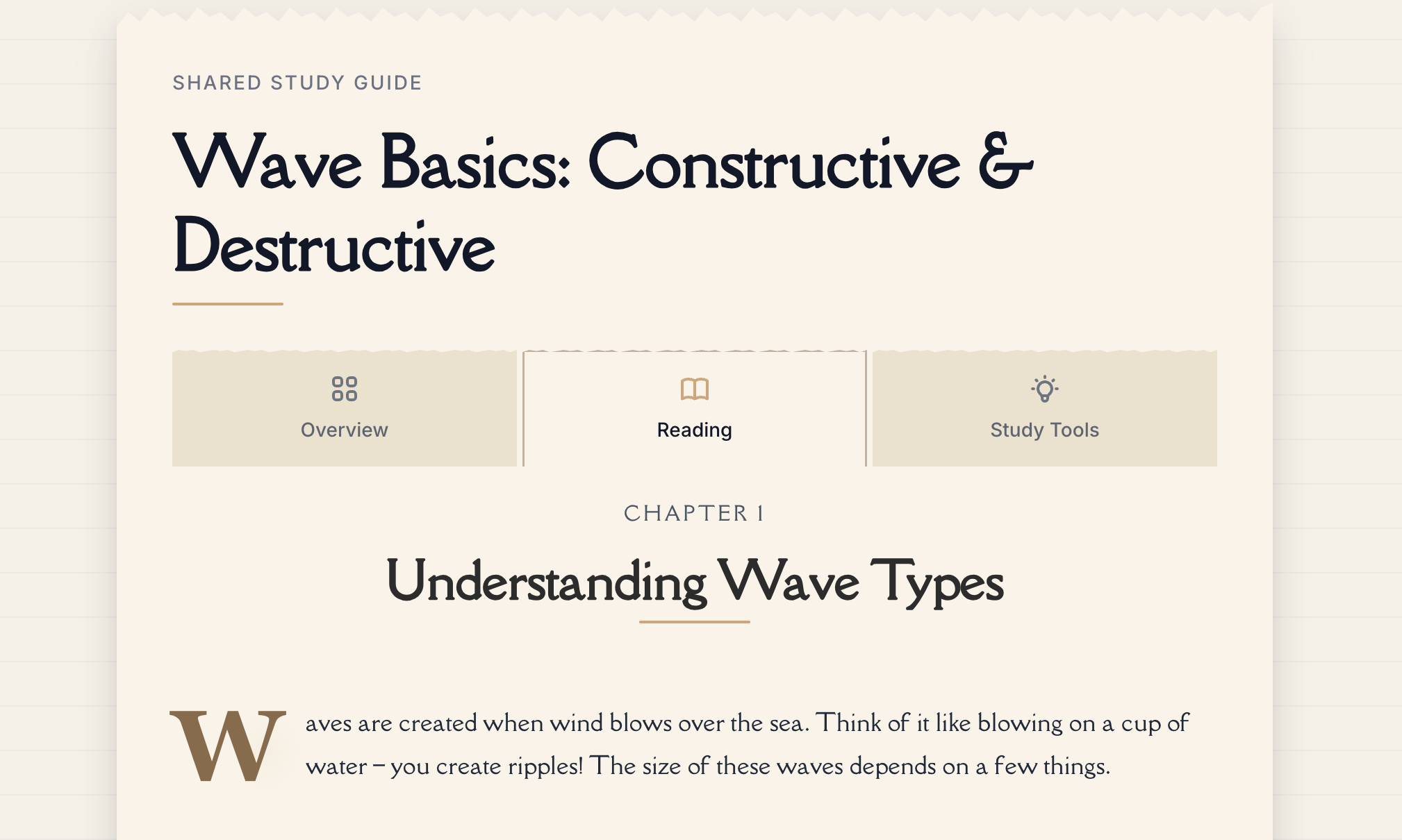 When someone accesses your shared study note, they get a clean, optimized web page designed for easy reading and learning. This guide explains what viewers see and how they can interact with your shared content.